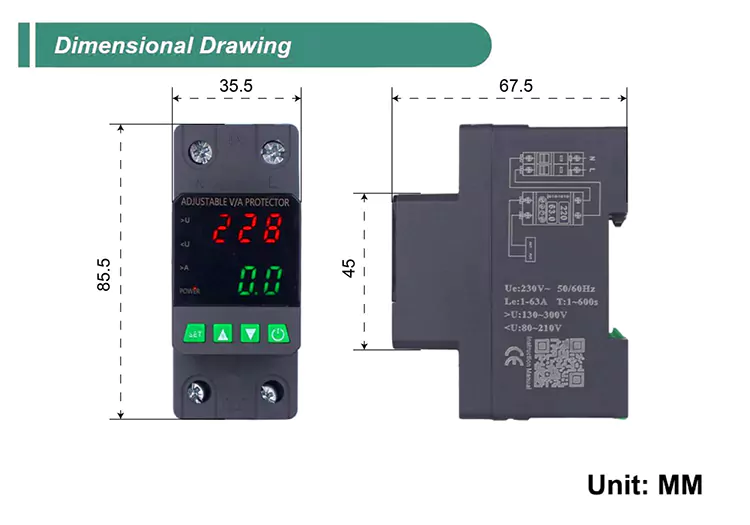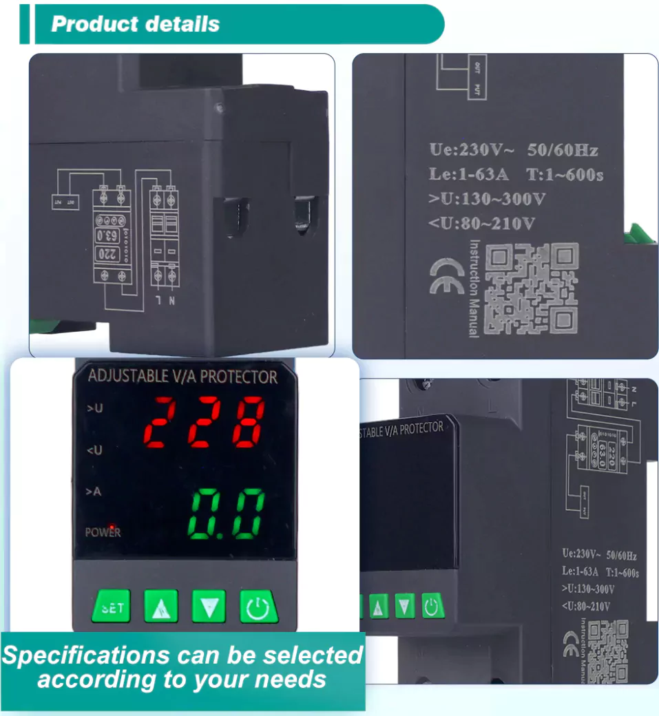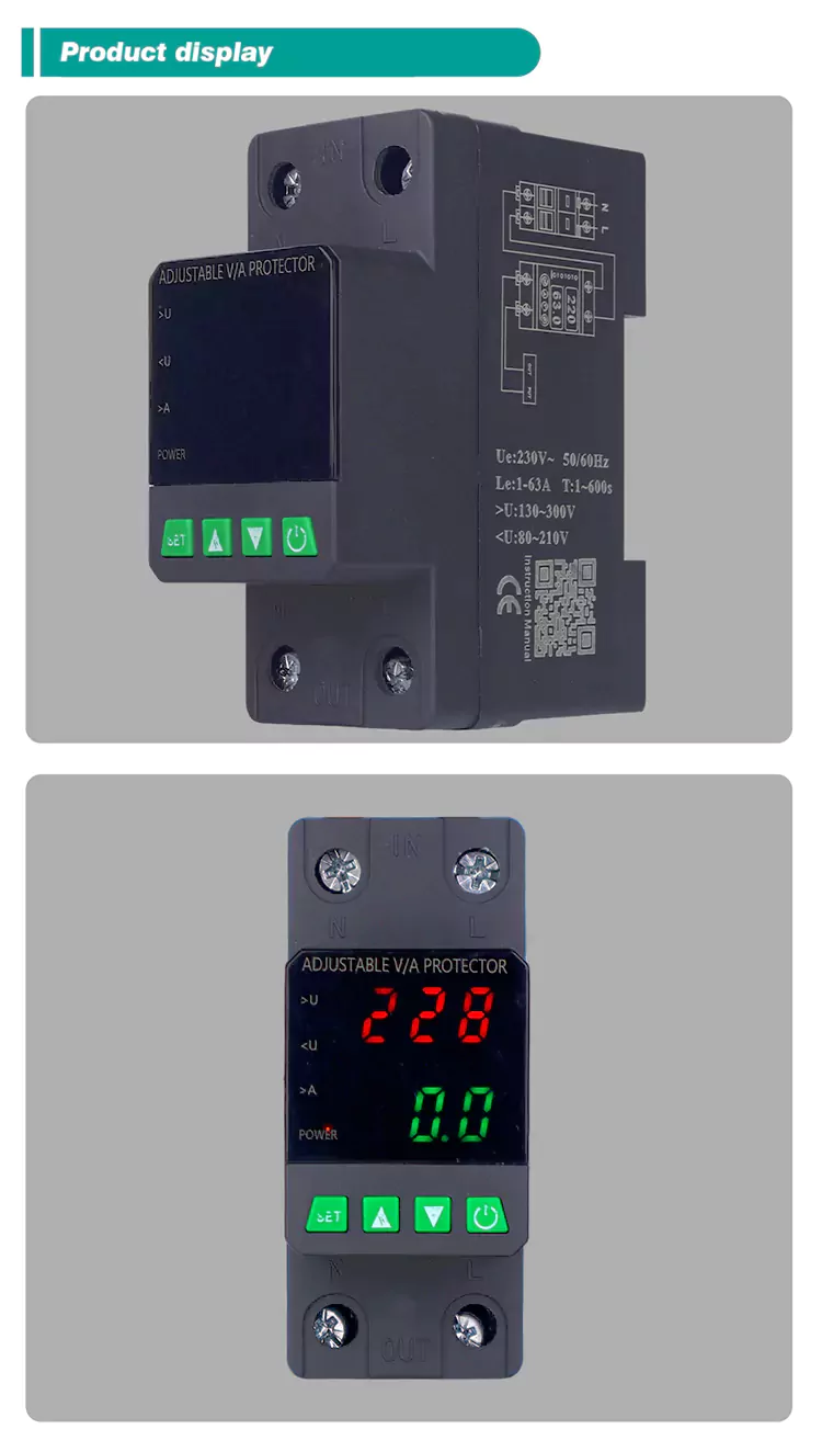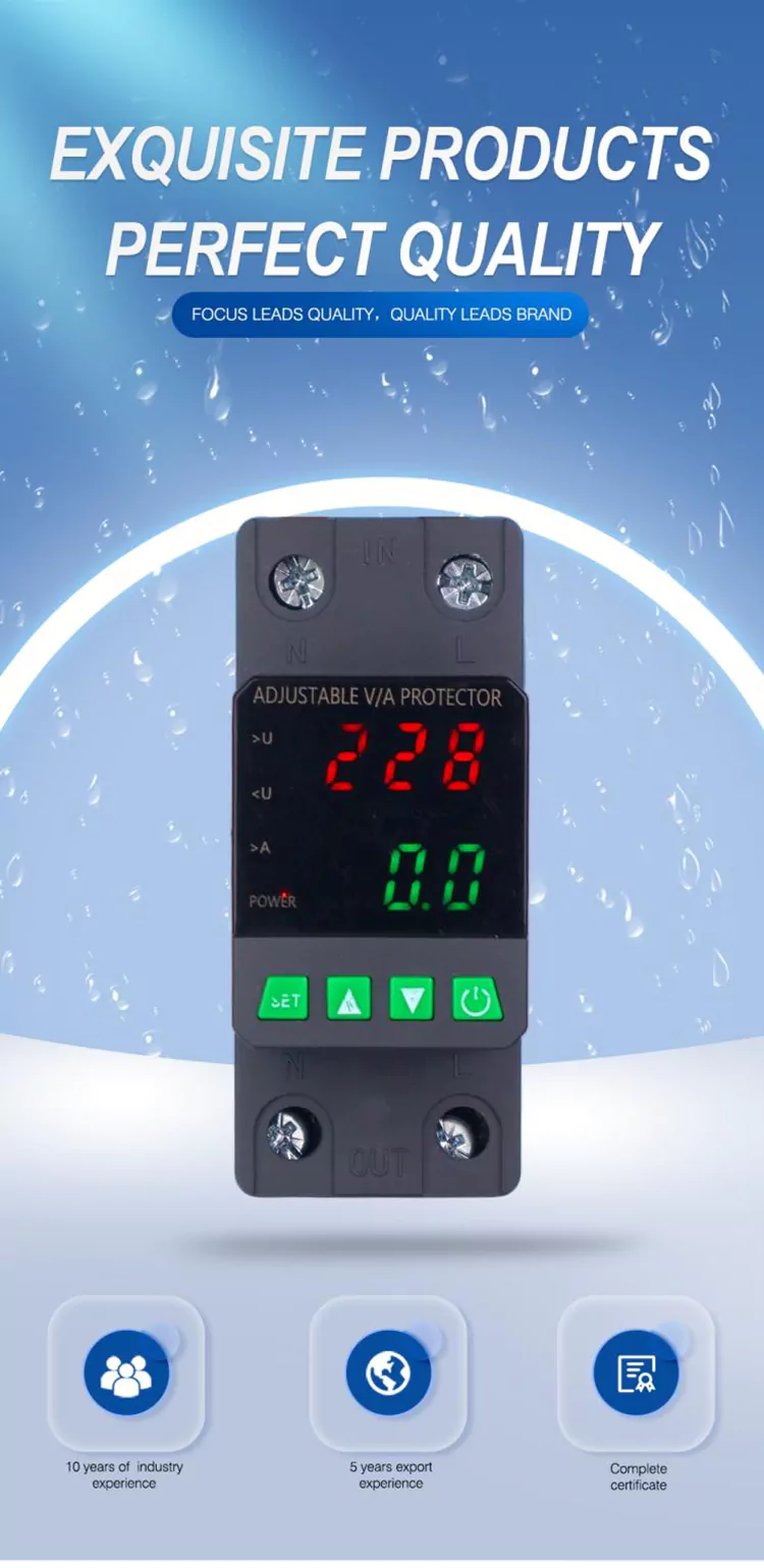 4- رله محافظ ولتاژ 2 قطب از طراحی ماژولار برای نصب آسان آهنگ استفاده می کند و ظاهر و عملکرد آن را تقویت می کند.