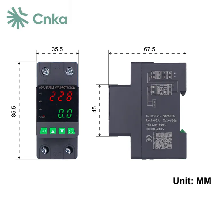 CNKA یک تأمین کننده مشهور چینی است که عمده فروشی محافظ ولتاژ نمایش دوتایی خود را ارائه می دهد. این دستگاه ها به طور خاص برای مدارهای تک فاز AC 220V ، 50 هرتز با جریان دارای امتیاز 63A طراحی شده اند و آنها را به یک انتخاب ایده آل برای محافظت از جعبه های توزیع مسکونی یا سیم های تأمین کننده برق به تجهیزات تک فاز تبدیل می کنند.